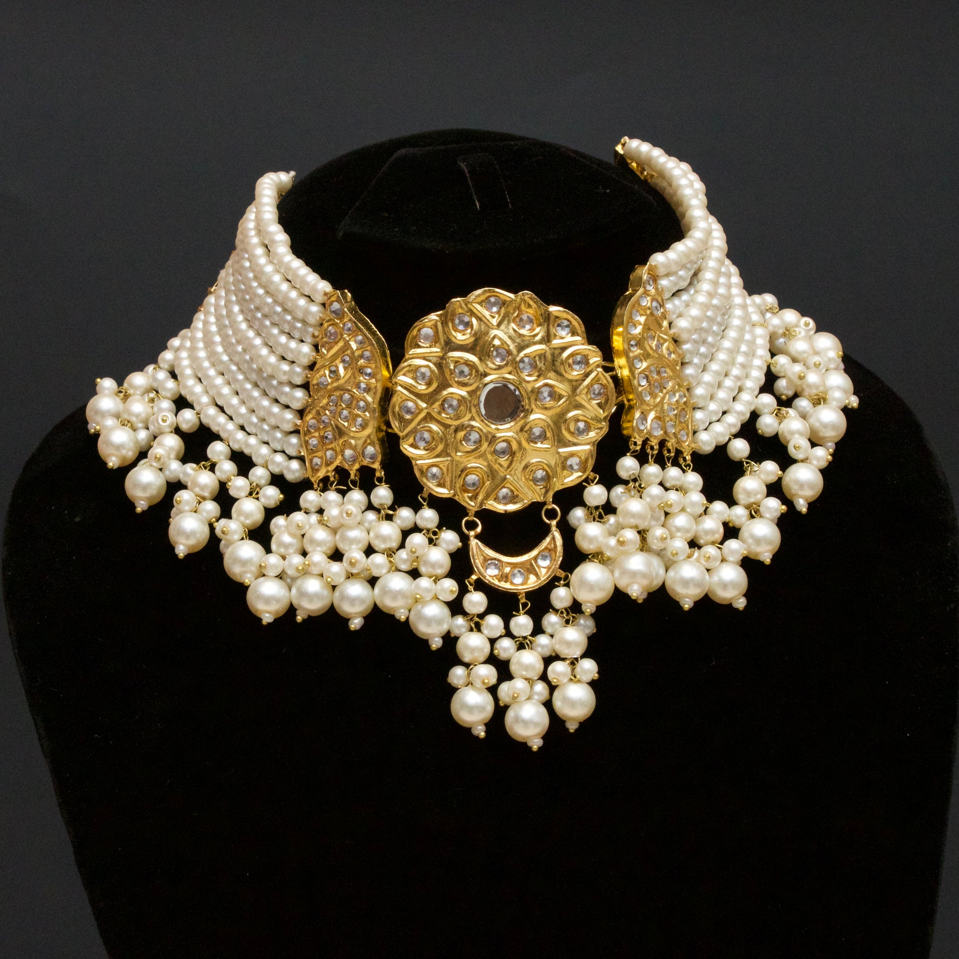 Experience timeless elegance with our Divine Kundan Radiance Set a captivating blend of traditional craftsmanship and royal allure. Meticulously handcrafted on a rich Laak base, this set is adorned with authentic Kundan stones and finished with cascading freshwater pearl hangings, bringing grace and vibrancy to every look.