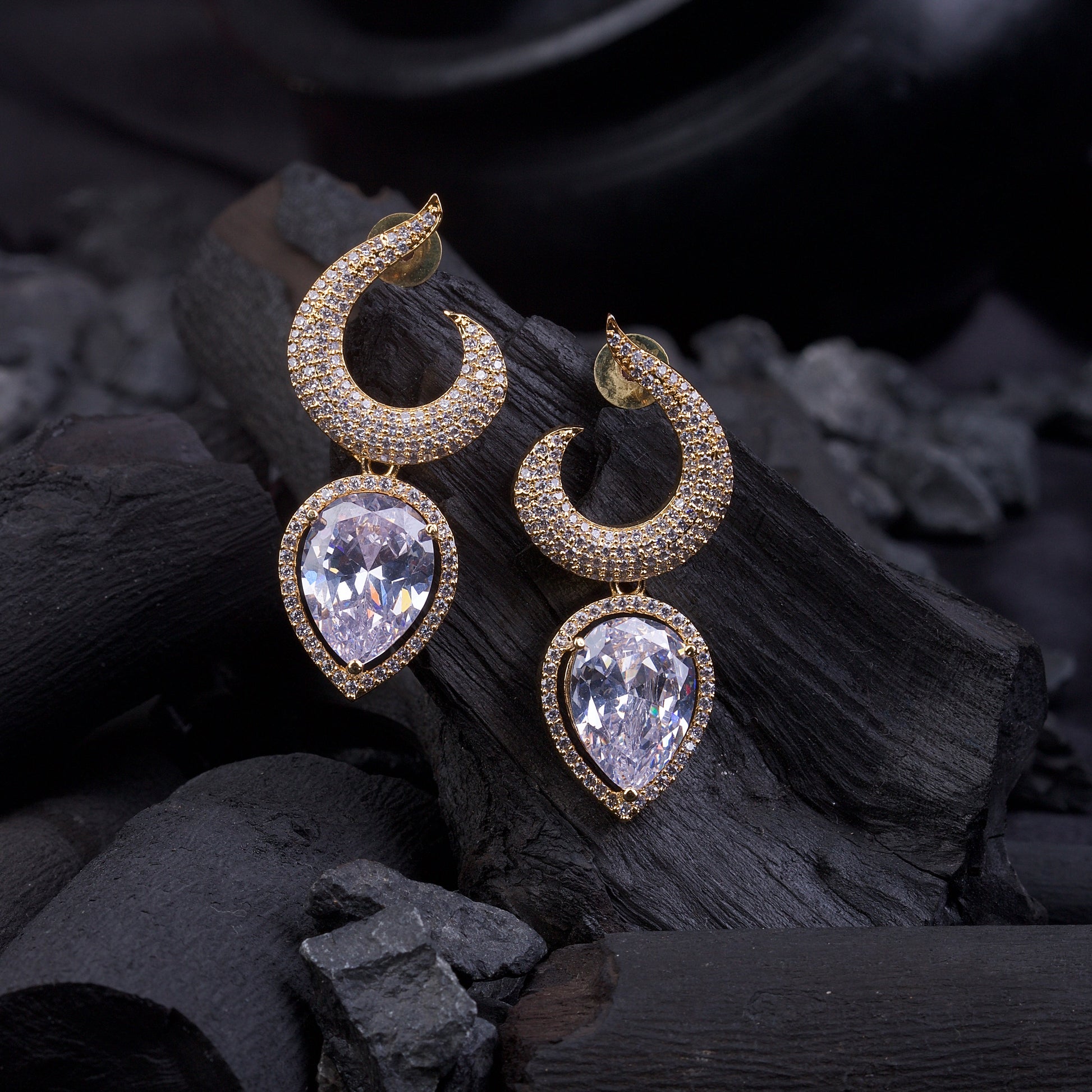Dazzling Zircon Stones: These earrings are adorned with high-quality Zircon stones, celebrated for their exceptional clarity and brilliant fire. Often referred to as American Diamonds, these stones deliver maximum sparkle that rivals natural diamonds
