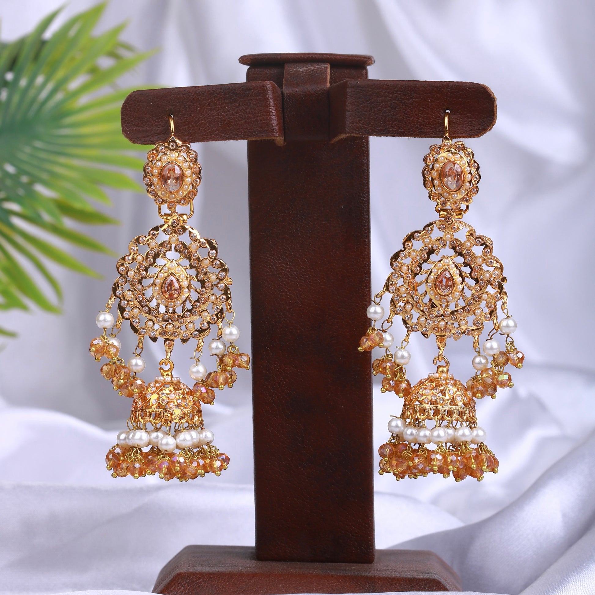 Elevate your festive style with our Heirloom Kundan Chandbalis. Expertly handmade with radiant Laak Kundan, vibrant red and pearl-like beads, and graceful detailing, these earrings are a timeless fusion of tradition and charm. The perfect accessory to complete bridal, formal, or festive looks — finished with 22K Gold Polish for a luxurious glow.