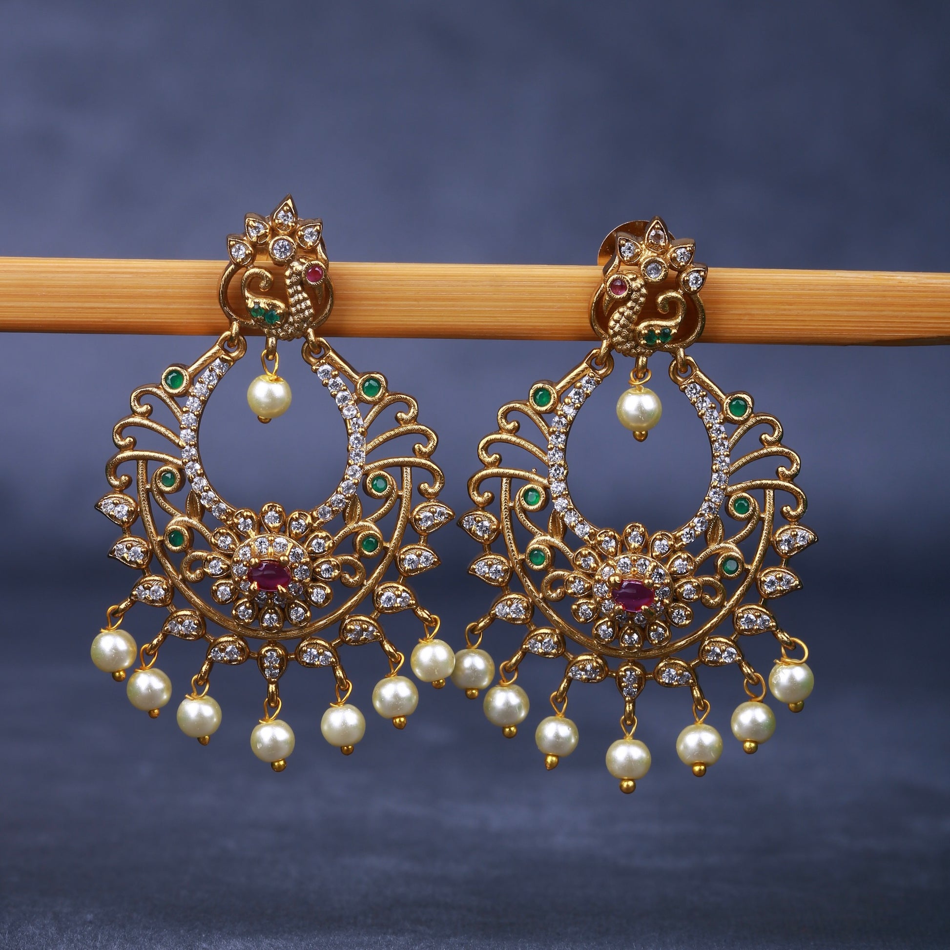 Stones: Semi-precious red and green stones with cultured pearls