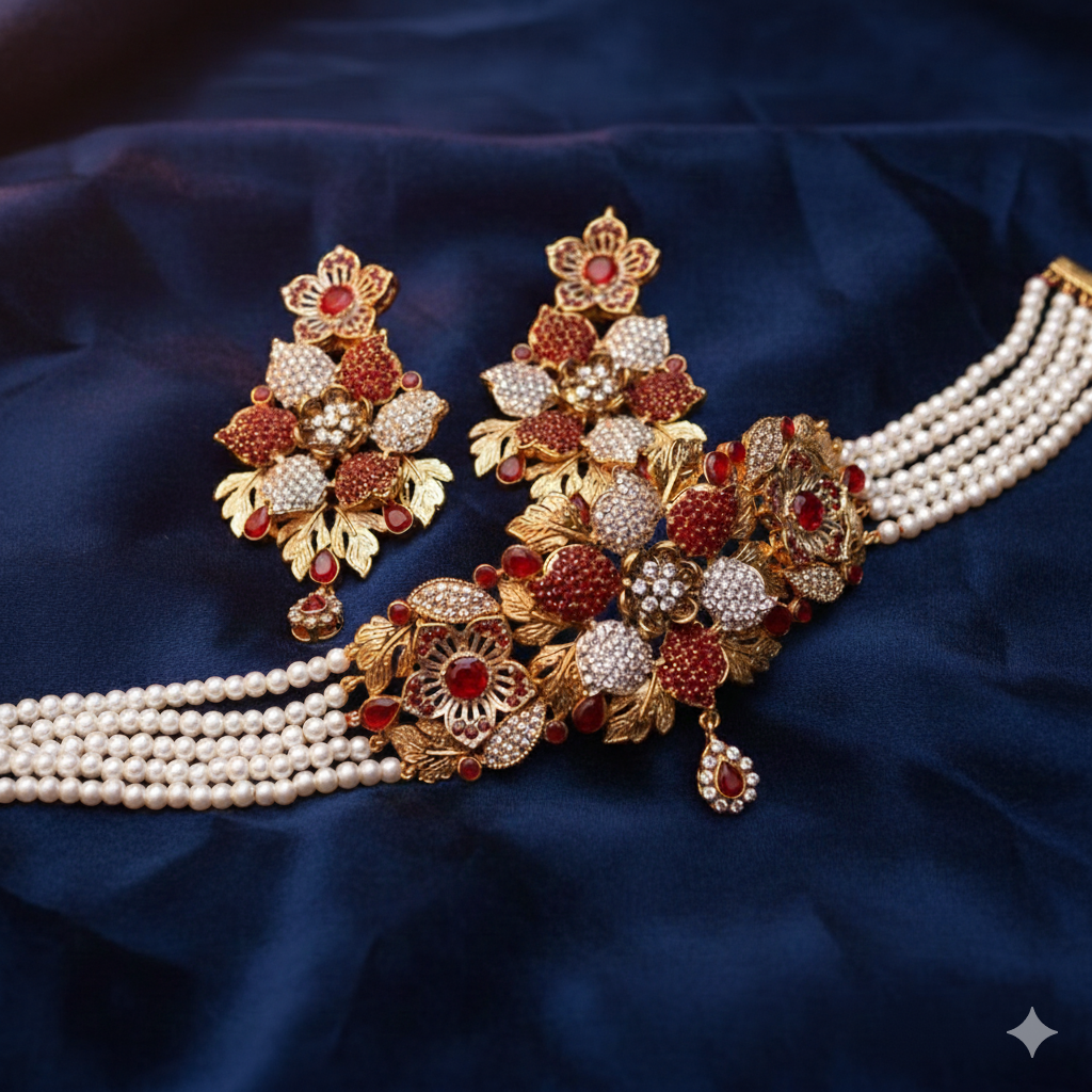A Statement Piece: Whether for a wedding, a festive celebration, or a grand event, this choker and earring set promises to be the centerpiece of your ensemble.