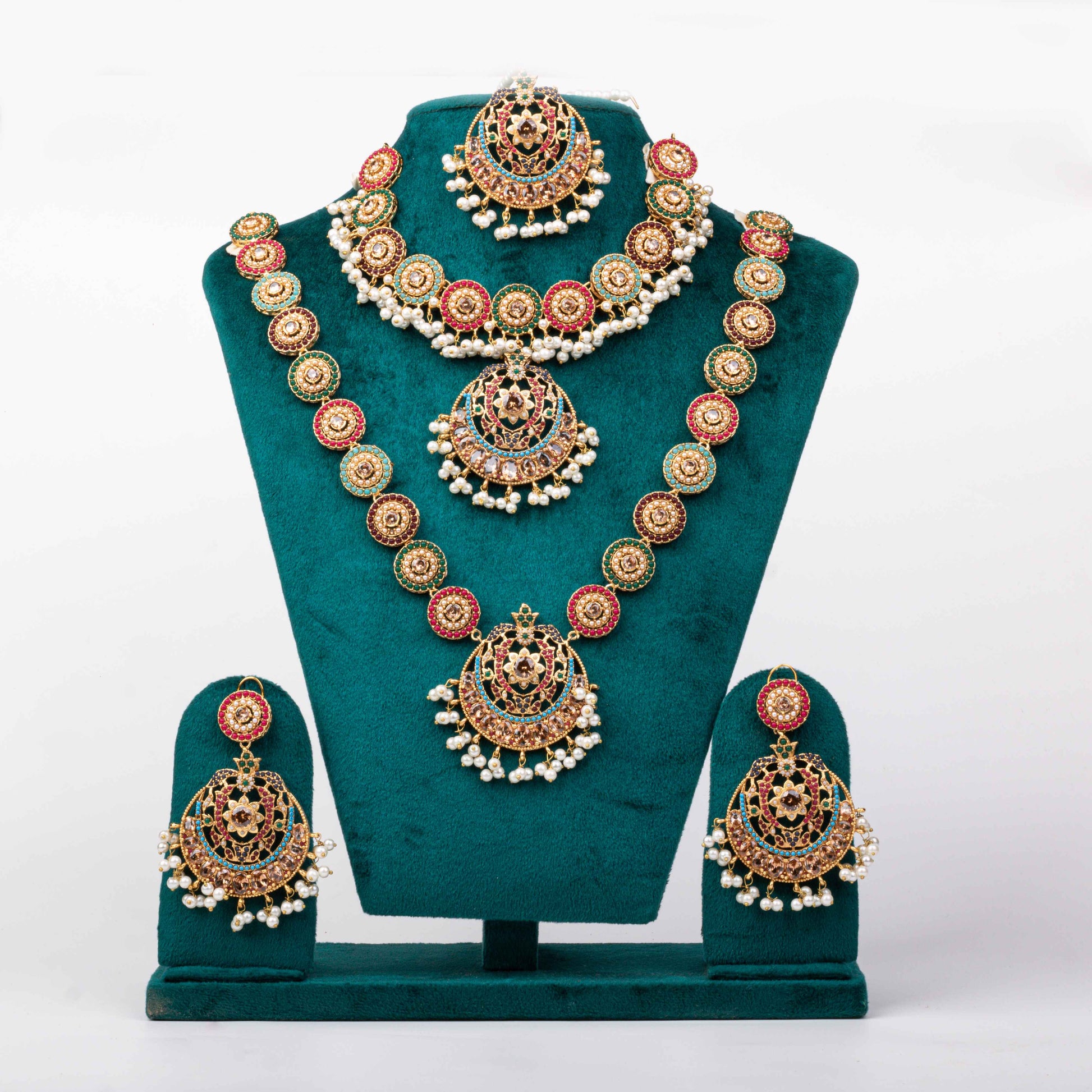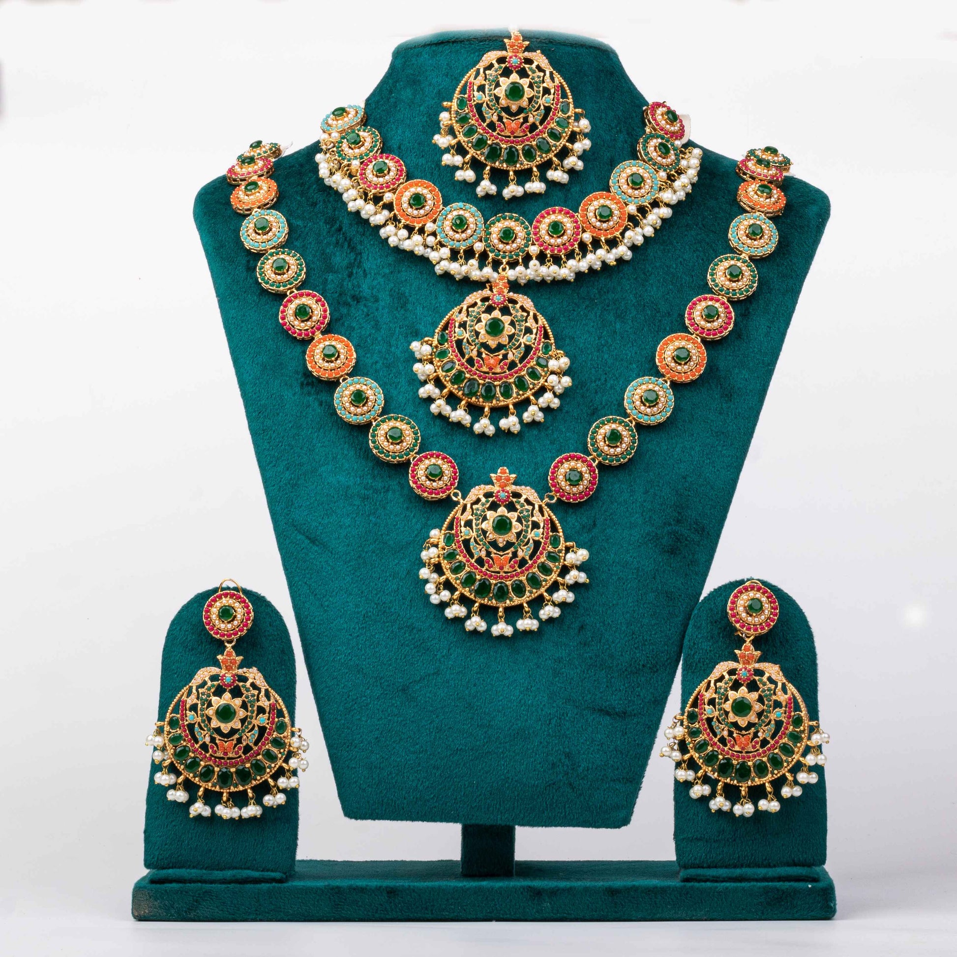 Delicacy and sophistication blend seamlessly to create these magical and beautiful jewels! This elegant Naurattan set is crafted with meticulous care, evoking a royal aura and a surreal sense of beauty.