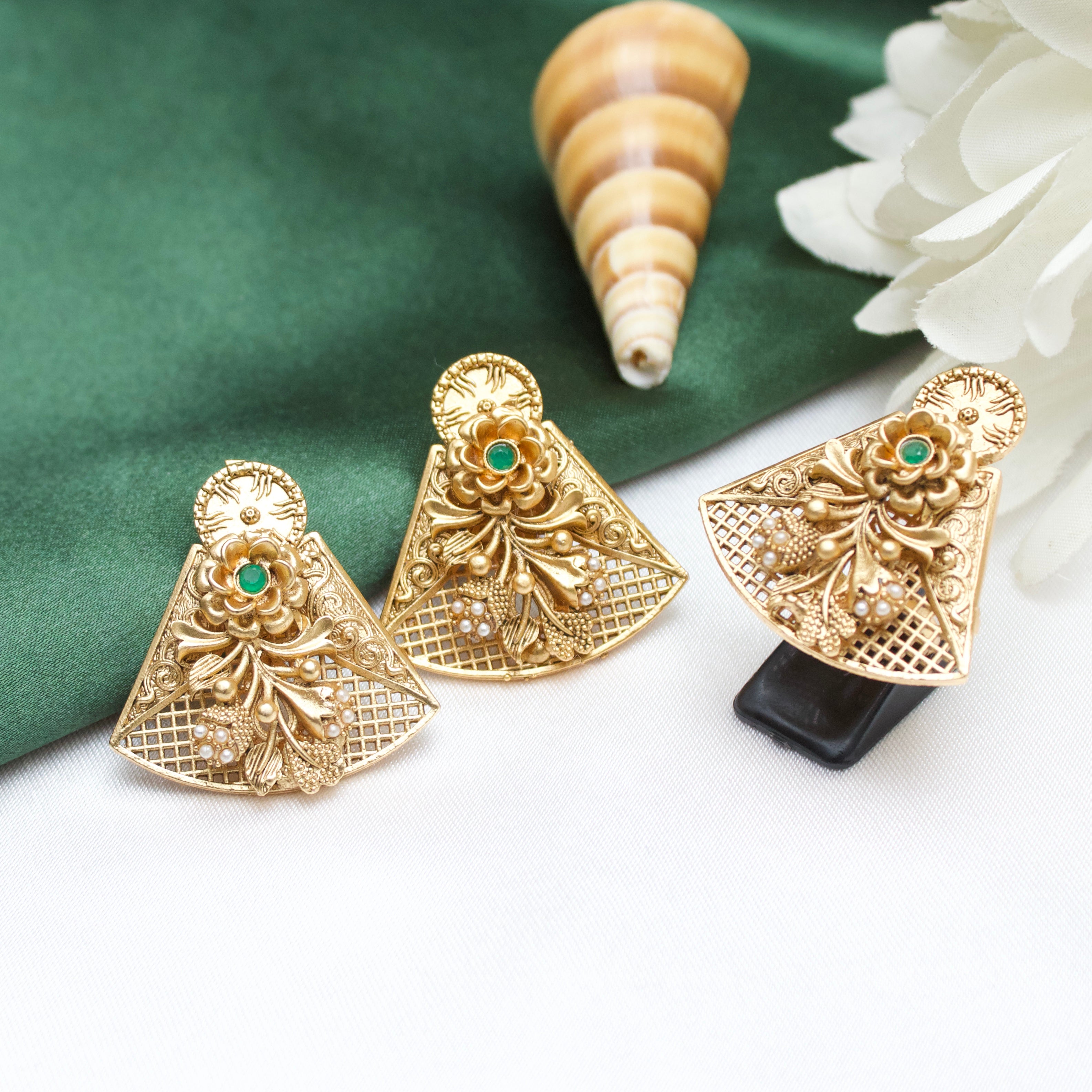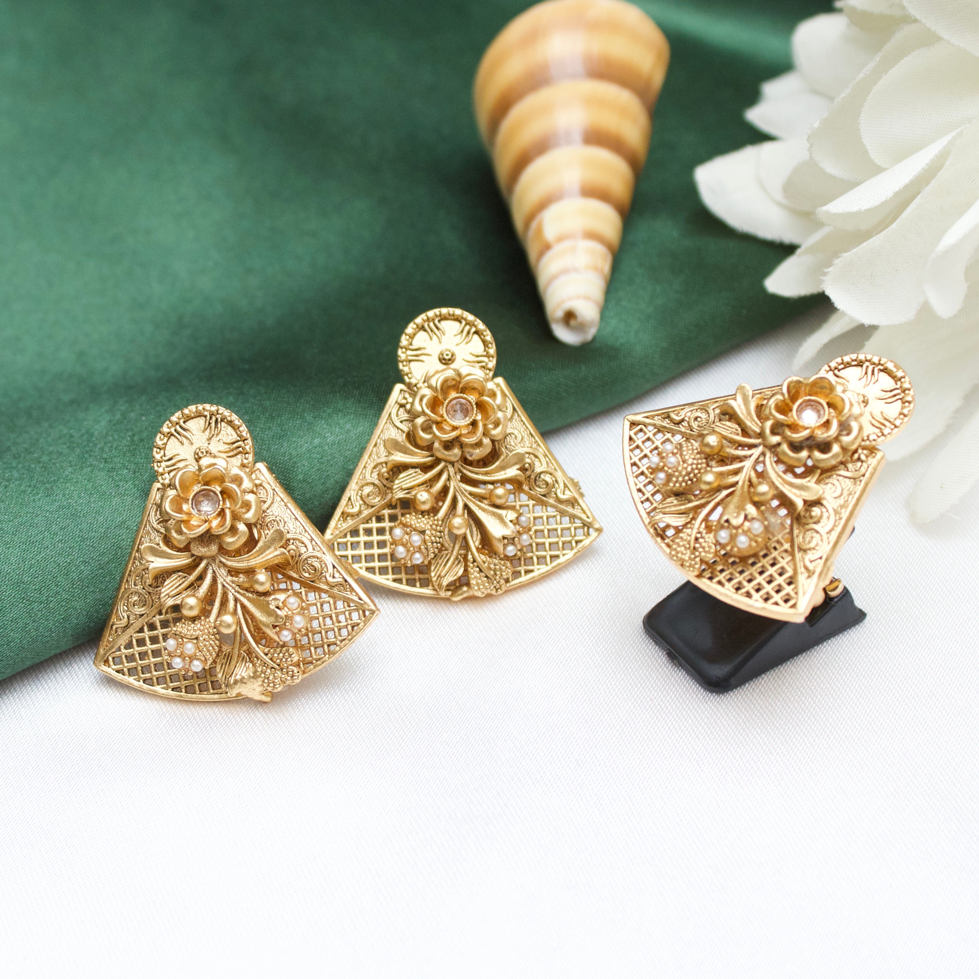 This tantalizing piece of art featuring Combo Set with 22kt gold Plated having a compelling choker design with a glossy stone at the center. It is perfect to add a luxurious effect to all your ethnic attires.