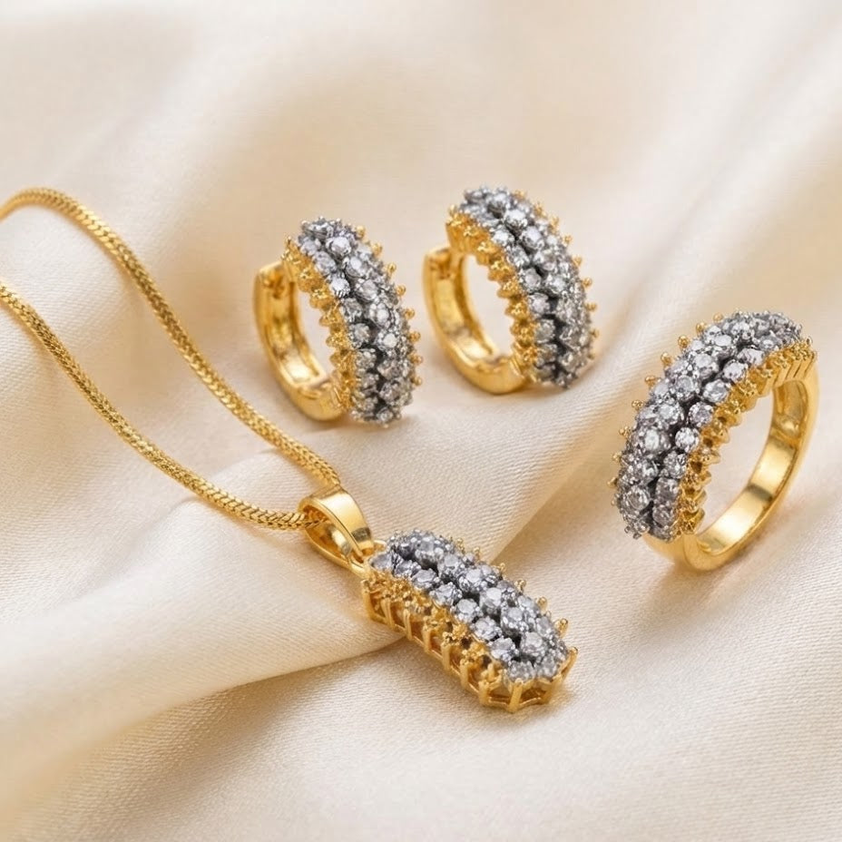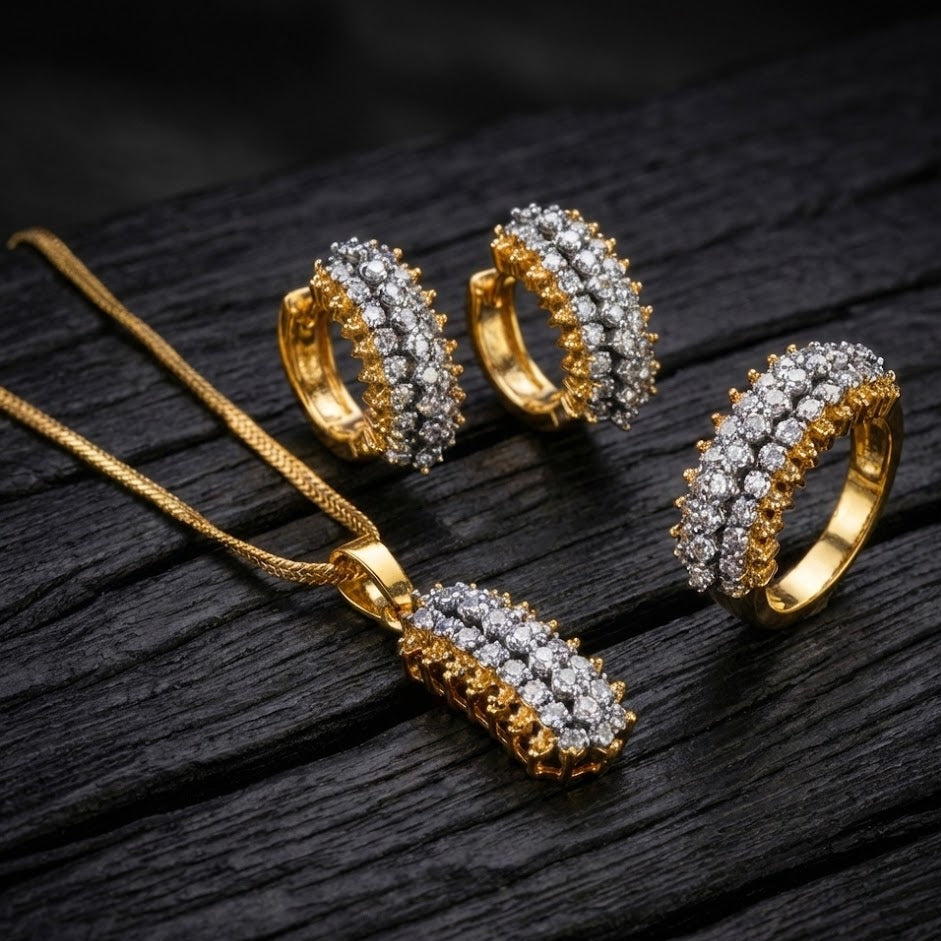 Explore our beautiful 24K Gold Plated Ganga Jamna Articles, designed with intricate diamond-cut patterns and embellished with real American Zircons. These pieces combine timeless elegance with a luxurious finish, making them a must-have for any jewelry collection.