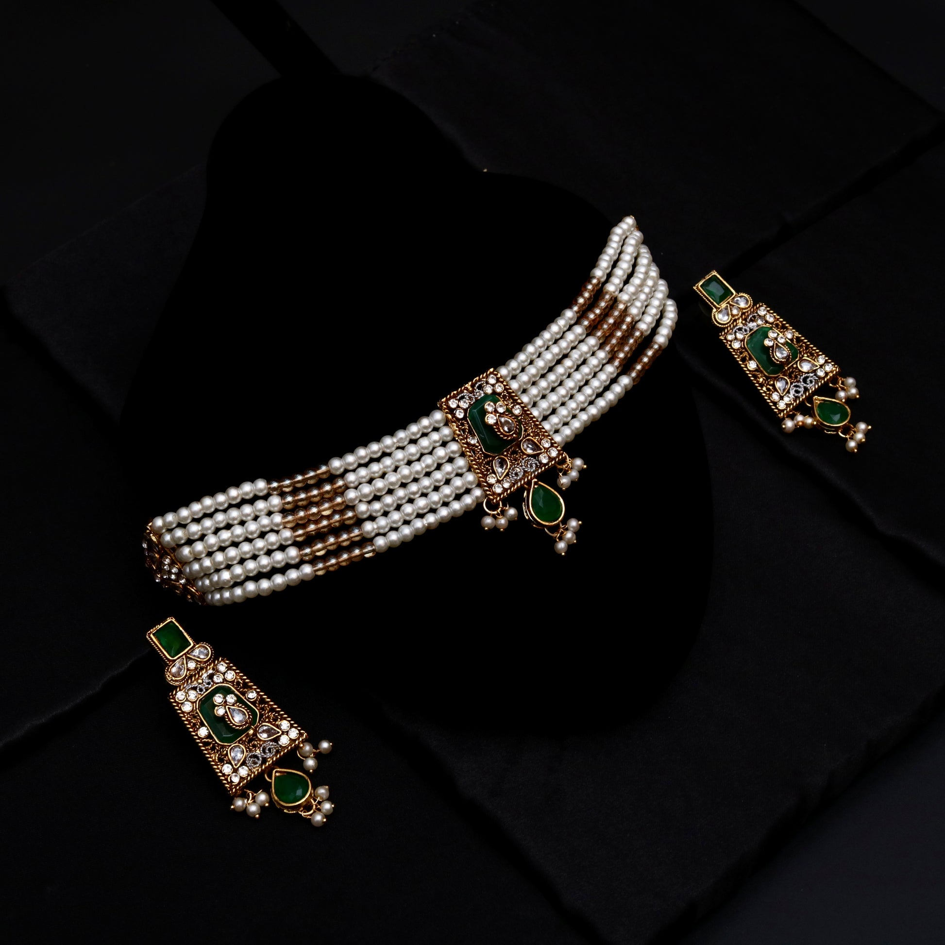 ✨ Polish: Antique Gold Finish with Pearl & Kundan Details