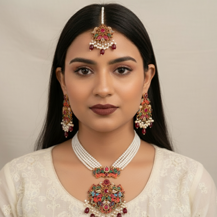 ✨ Material: Navratna stones, pearls, and 22K Gold Polish