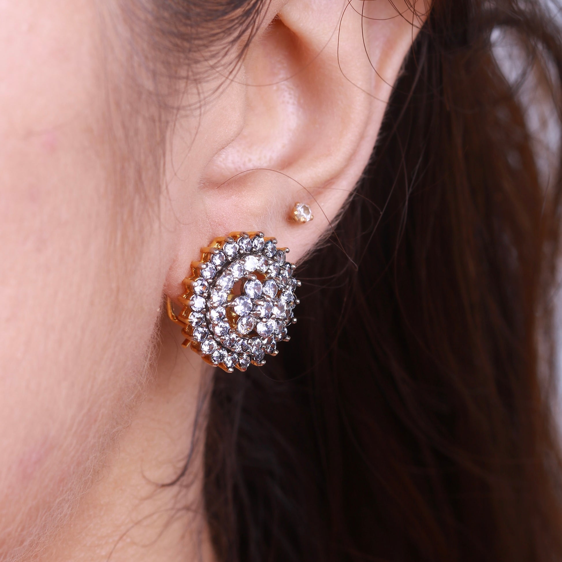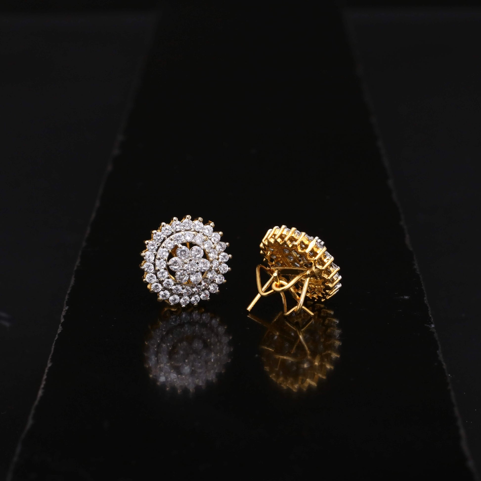 Explore our exquisite 22K Silver Plated Earrings collection, featuring intricate diamond-cut patterns and adorned with real American Zircons. These meticulously crafted articles blend elegance and sophistication, making them perfect for any occasion.